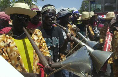 Someone would recite a speech to him; perhaps they would sing a song in his honor, and the master would place a gift of money in the beribboned money basket held forward for his convenience. Today the money basket, gaudily decorated with ribbons is an inevitable and necessary part of Rara. Usually, Rara takes place a few days before Easter after the city Carnival or Mardi-Gras. Bands of people gather together along the roads of the plains and of the hills to have fun. Each band is headed by three men playing vaccines, or bamboos, their way lighted by torches or fueled lamps; the crowds surge forward, stopping to receive money, perhaps food, at each place. Rara ends the morning of Easter Sunday.